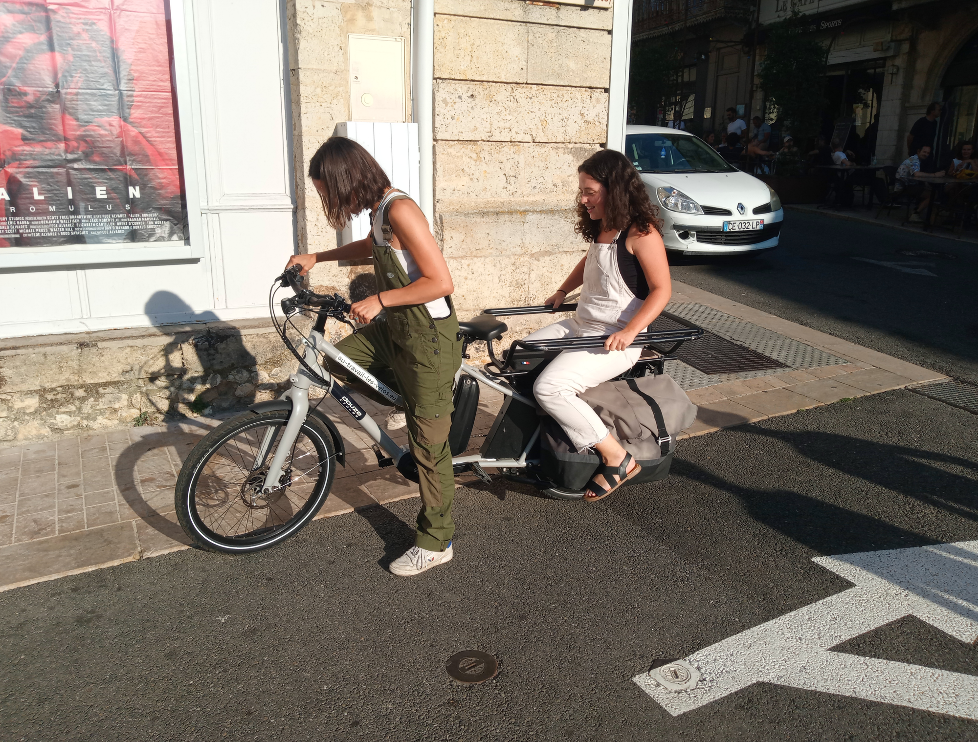Pour Camille (en stage pendant son année de césure, après avoir validé une Licence en illustration), déjà adepte de la pratique cycliste quotidienne dans les Landes où elle réside, le vélo électrique est aussi une vraie découverte : « J’étais réticente au début, le fait qu’ils soient à moteur ça me faisait un peu peur. Avec toutes les côtes à Lectoure, j’ai fini par essayer. Au début un peu surprise par la vitesse, je l’utilise désormais comme moyen de déplacement quotidien et je mets même l’assistance « full speed » à certains endroits ! C’est la solution idéale ici pour éviter la voiture et se déplacer plus vite qu’à pied. »